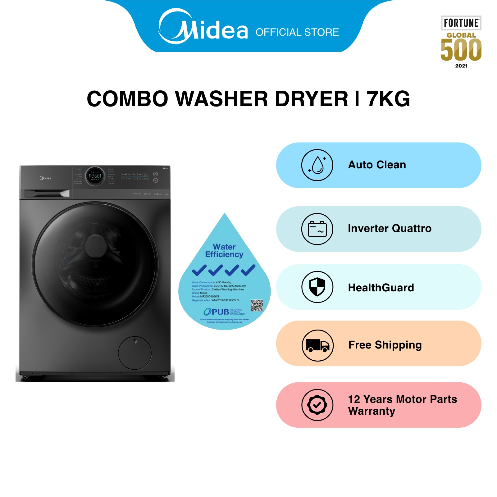 [Bulky] Midea MF200D100WB Combo Washer Dryer (10Kg Wash / 7Kg Dry), Water Efficiency 4 Ticks