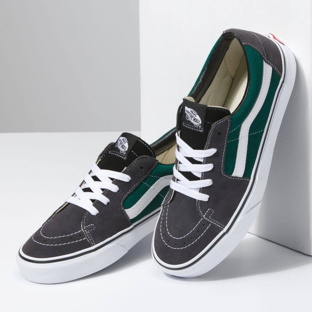 The Sk8-Low, a takedown of the legendary Vans high top shoe, is built with an array of colors and materials to provide a familiar Sk8-Hi aesthetic in a low top shoe. Featuring sturdy canvas and suede uppers just like its taller counterpart, this lace-up style also includes re-enforced toe caps, supportive padded collars, and signature rubber waffle outsoles.