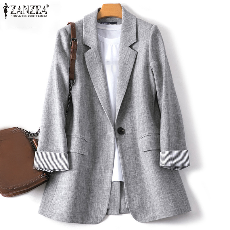ZANZEA Women Elegant Commute Long Sleeve Blazer Lapel Formal OL Loose Versatile Suits #2