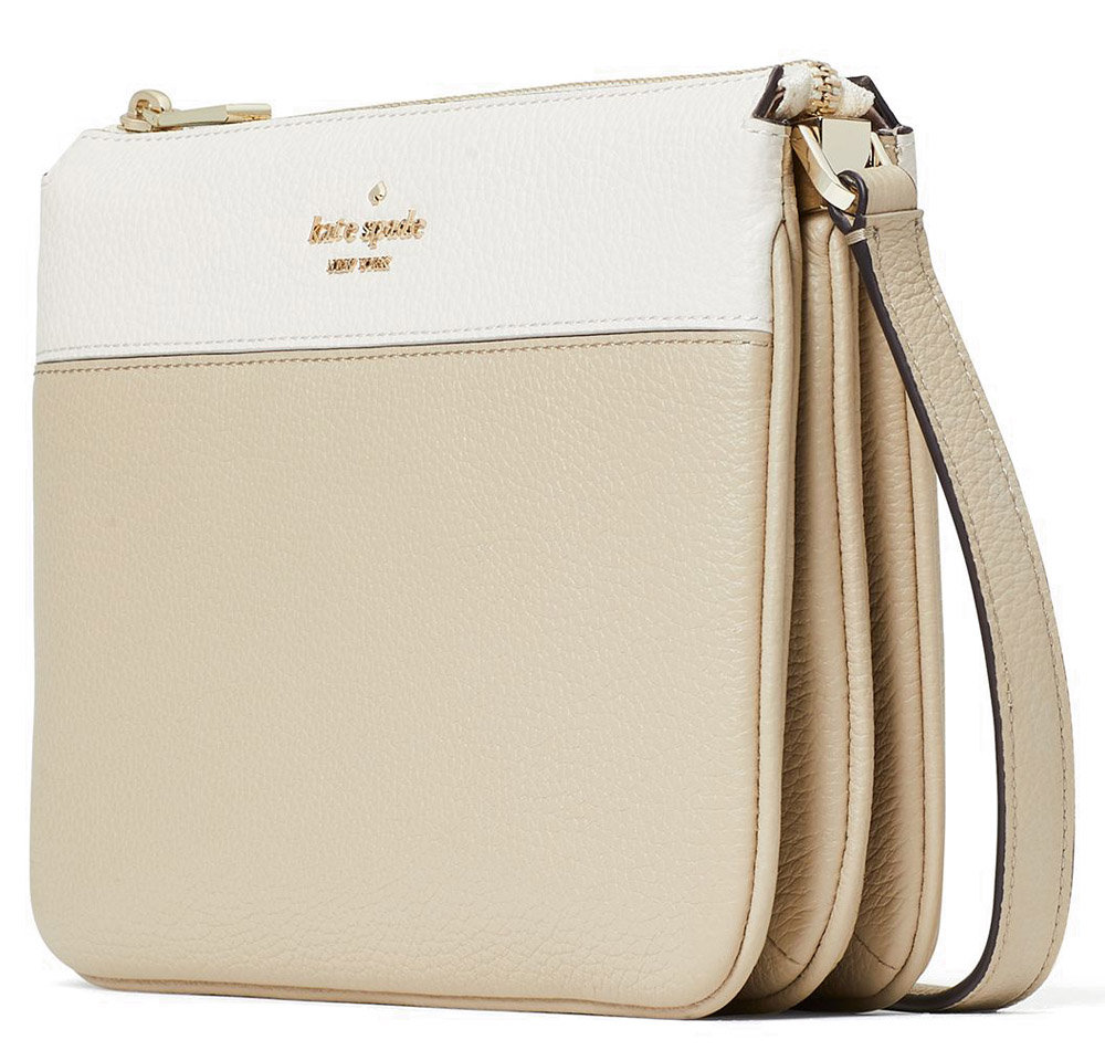 Kate Spade Handbag In Gift Box Crossbody Bag Leila Pebbled Leather Trip Light Sand Off White Beige # WKR00423