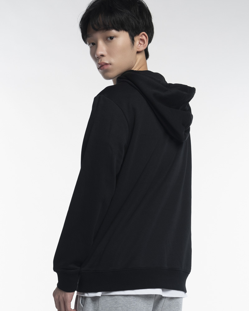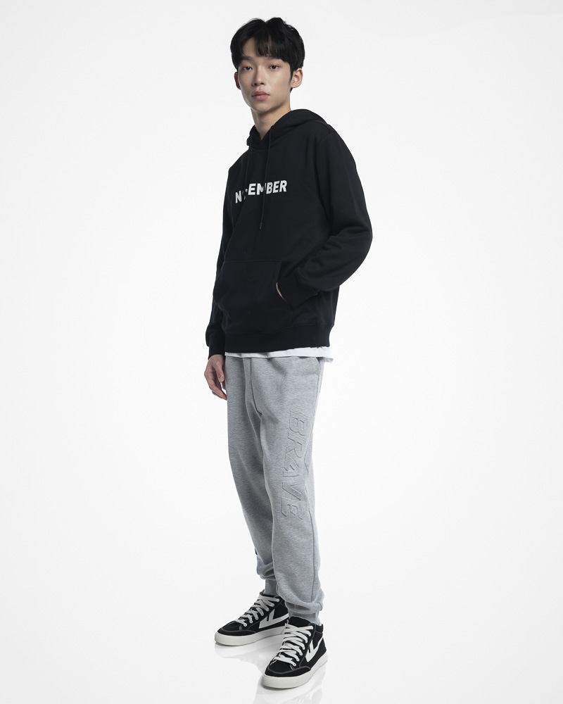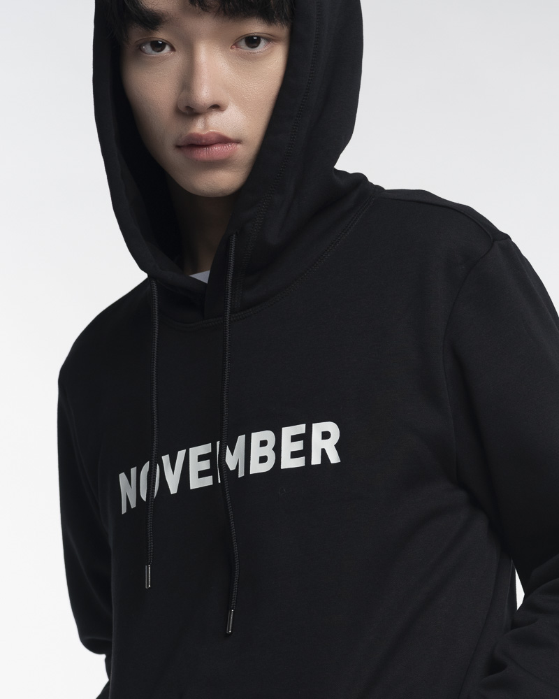 Yishion Men Solid Coloured Long Sleeve Hoodie with Kangaroo Pockets and November Slogan (Black)