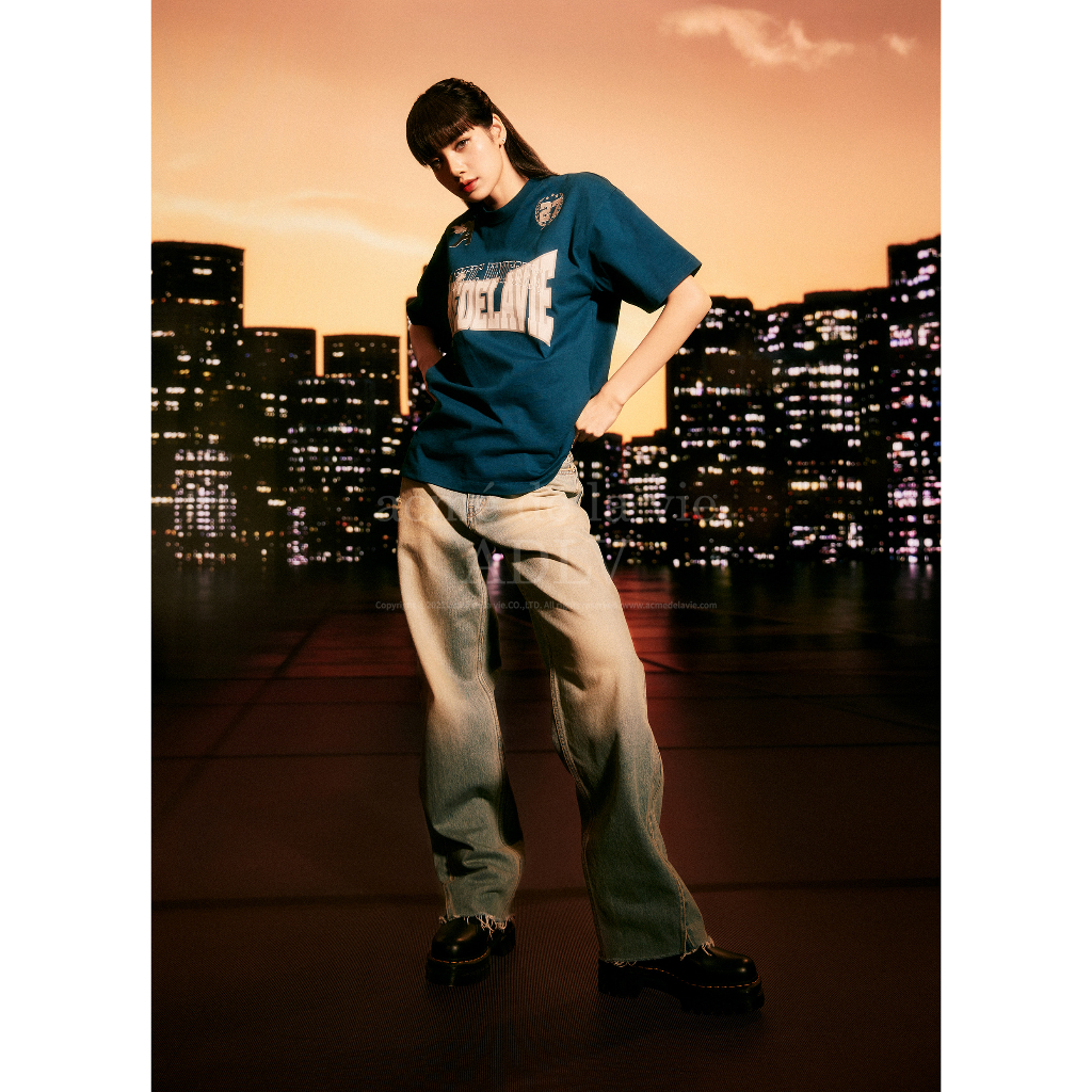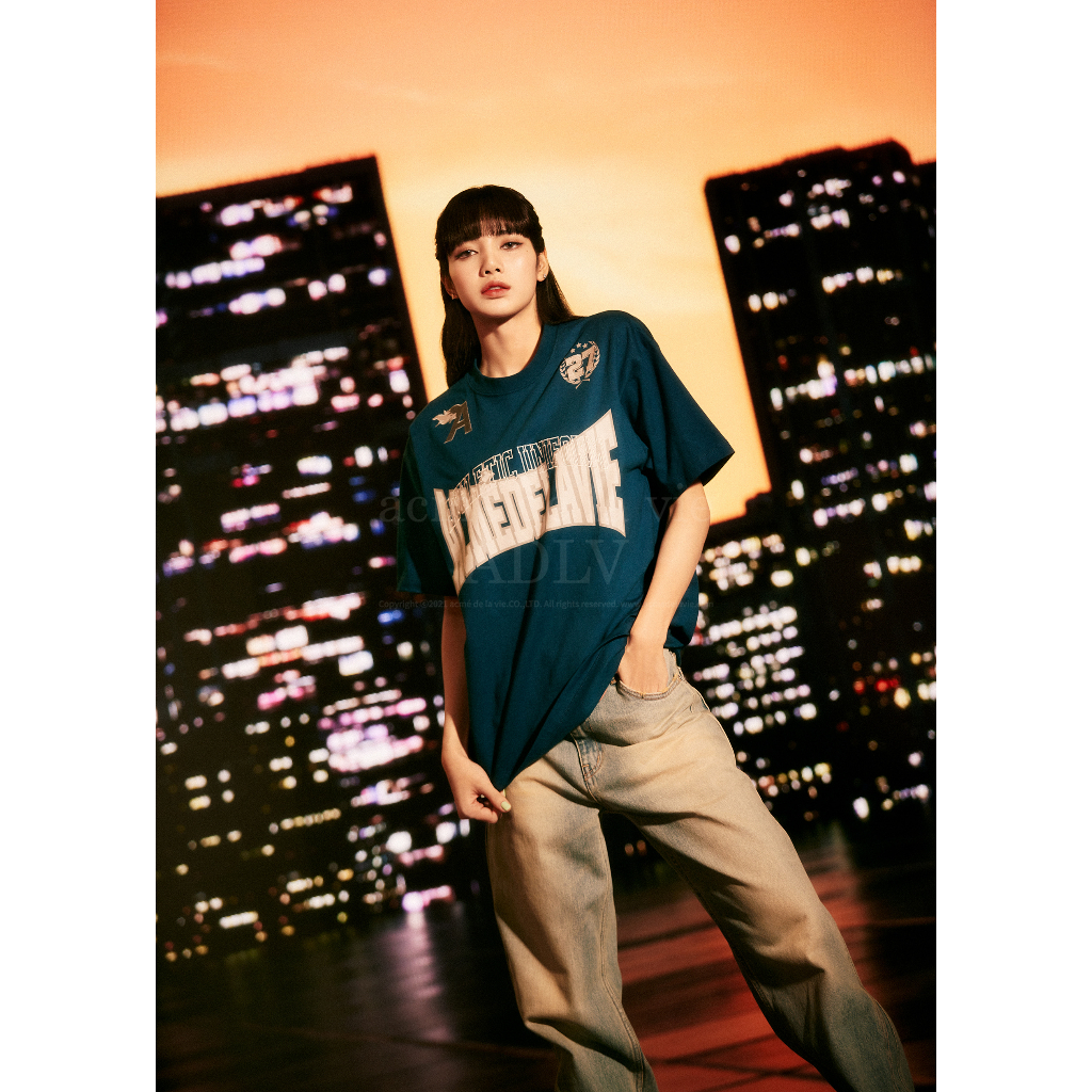 [acme de la vie] 2023 NEW BLACK PINK LISA SPORTY UNIFORM SHORT SLEEVE T-SHIRT OVERSIZED