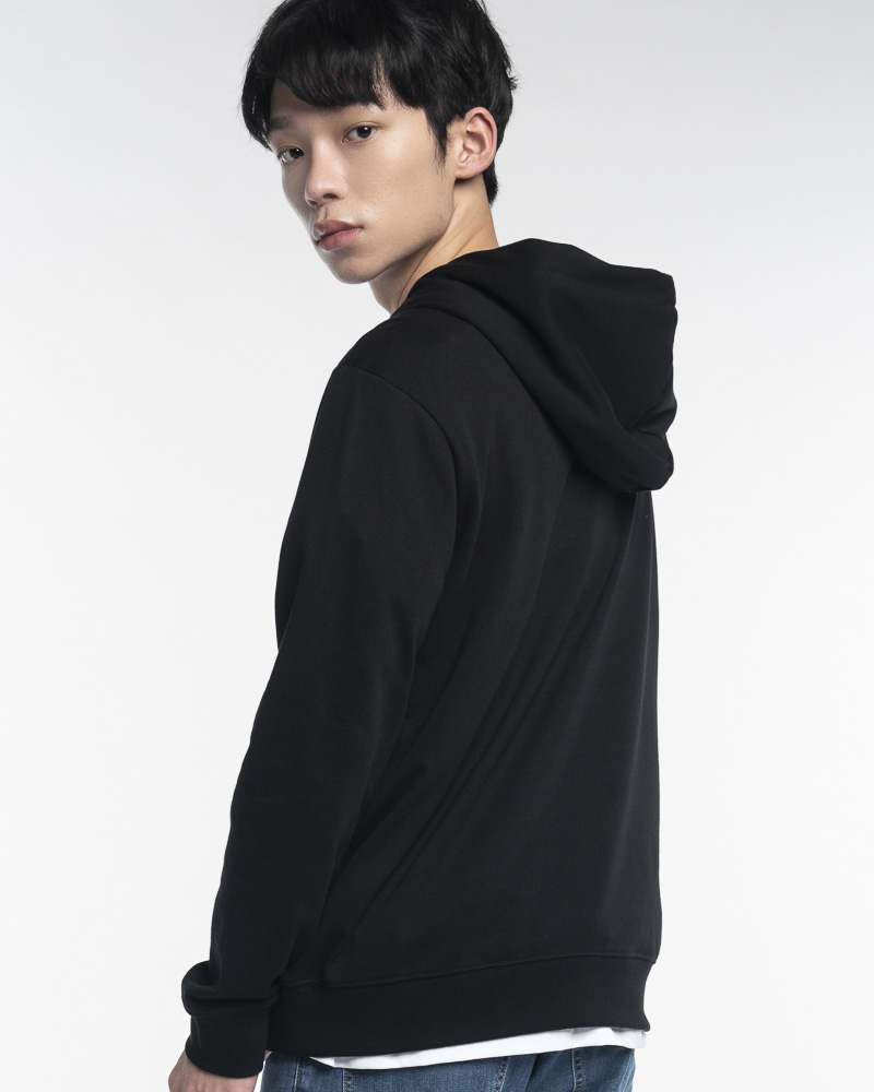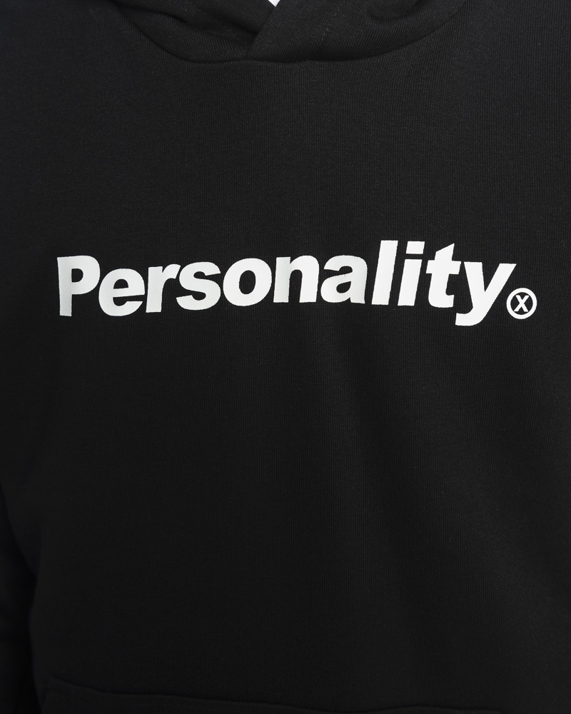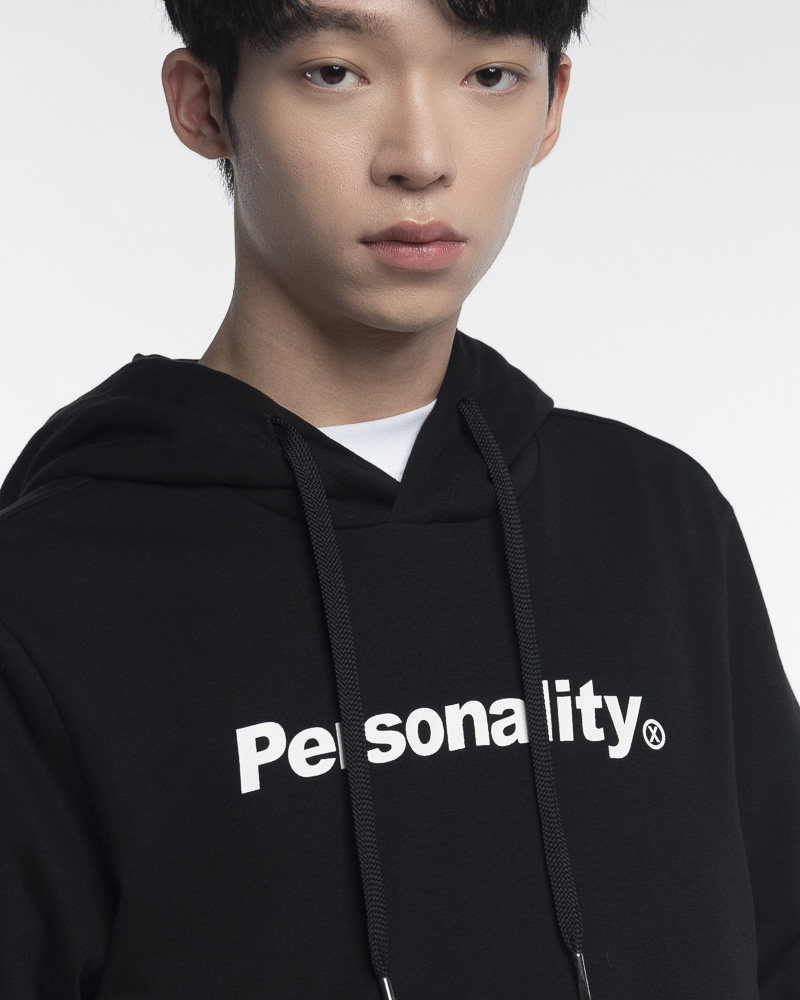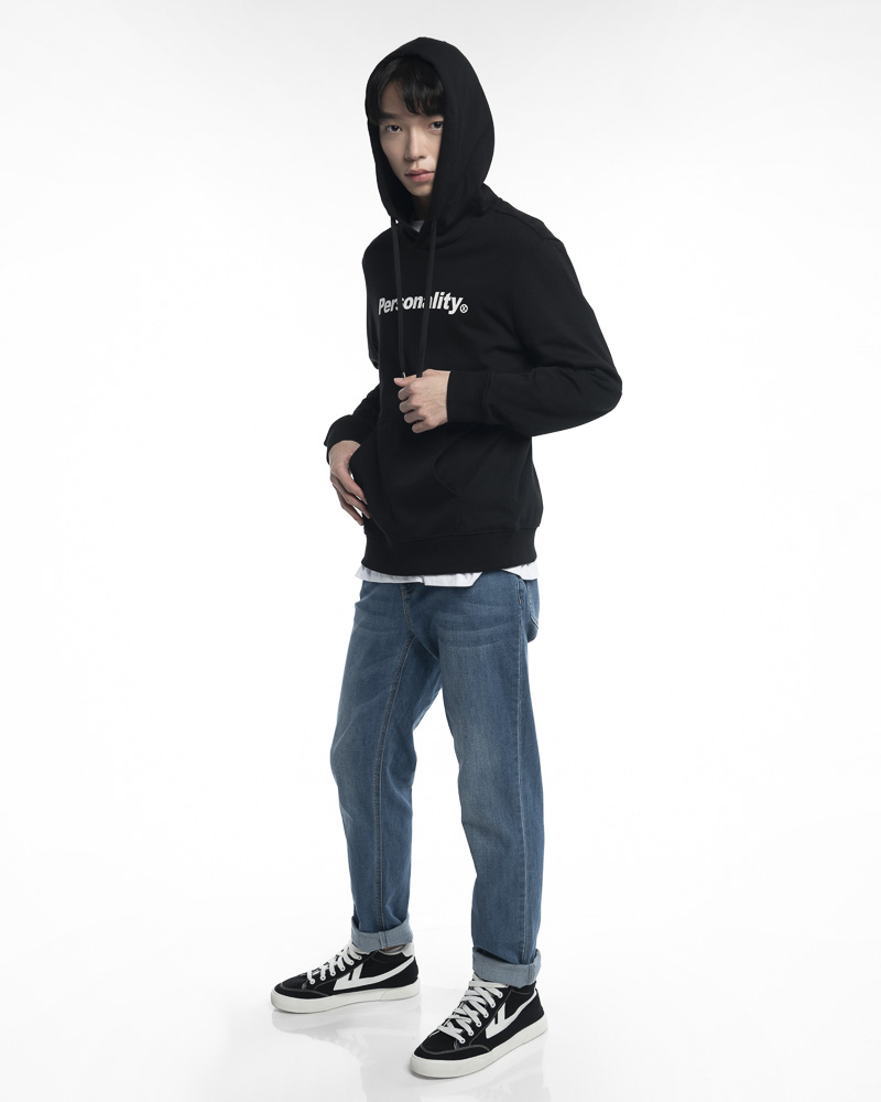 Yishion Men Solid Coloured Pullover Hoodie with Kangaroo Pockets and Personality Slogan (Black)