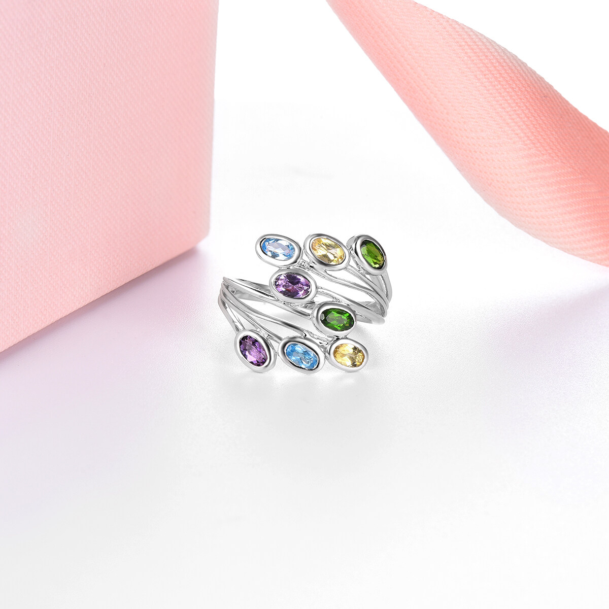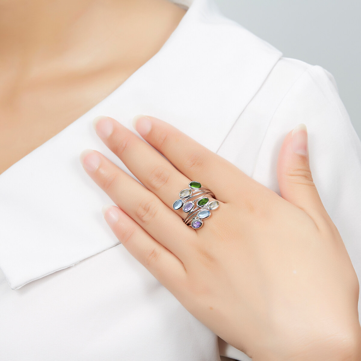 Multi-color Natural Gemstone Geniune Crystals Silver 925 Original Design Ring Fine Elegant Classic Jewelry Korean Style for Woman Gift