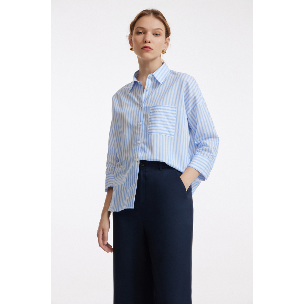 G2000 Women Ocean Oversized Fit Linen Stripe Shirt