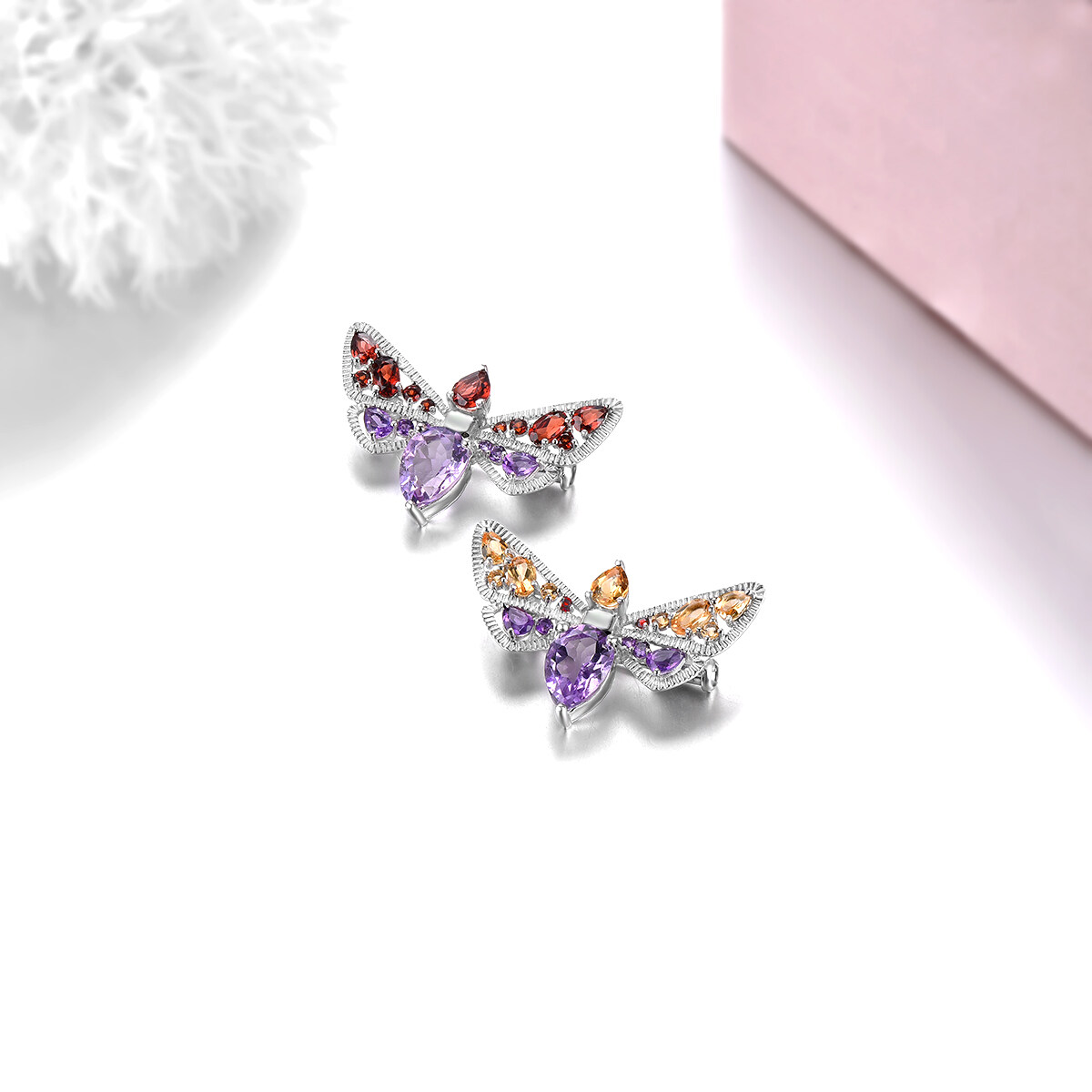 Natural Amethyst Red Garnet Citrine Bird shape Brooch Silver 925 Original Design Fashion Korean Style Jewelry Accessory Fine Elegant Birthday Accessory Gift for Women