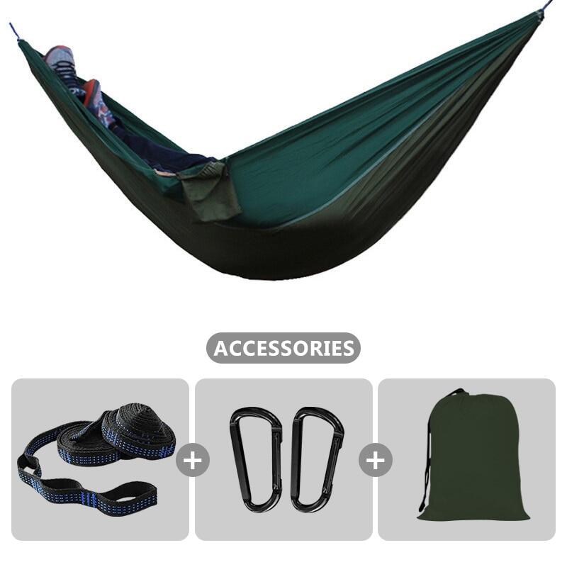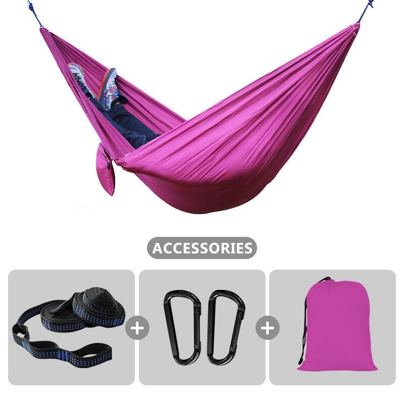Soft material & Support 500 pounds - Our hammocks are made of new high quality 210T parachute nylon fabric, it is very comfortable and durable. The camping hammocks provide relaxing support up to 500 lbs.