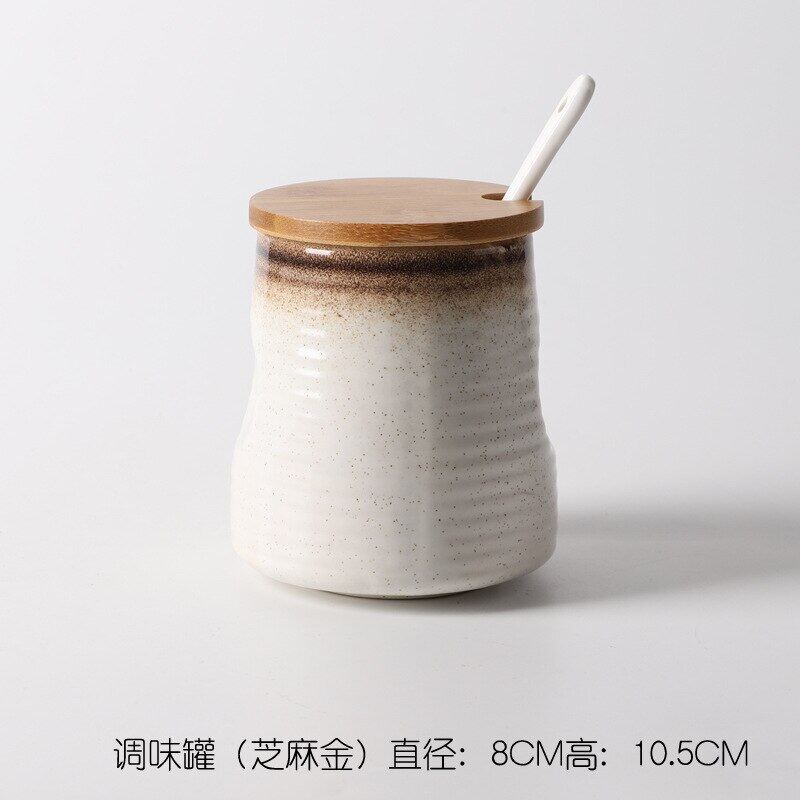 Creative Japanese-Style Ceramic Seasoning Jar Set Restaurant With Lid Spoon Salt Pepper MSG Jar Home Kitchen Seasoning Bottle