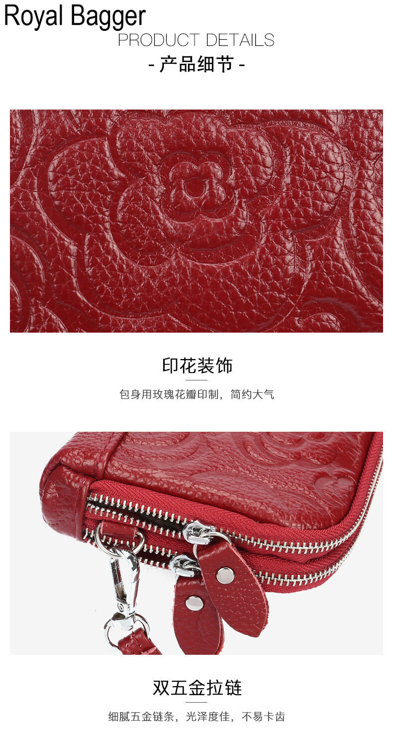 Royal Bagger Long Wallet Purse For Women Girls Genuine Cow Leather Fashion Clutch Shoulder Bags Handbag Multifunction